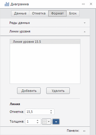 При работе с визуализаторами вкладки объединяются в группы: «Данные», «Отметка», «Формат», «Блок». Для переключения между группами используйте переключатели в верхней части панели.