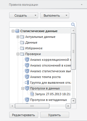 группы «Валидация данных» на вкладке «Расширенная аналитика» ленты инструментов для выполнения и просмотра итогов применения правил валидации.