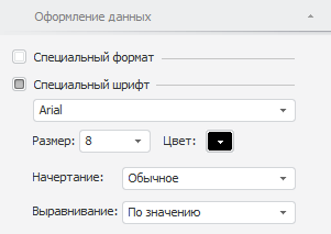 Чтобы изменить настройки шрифта, установите флажок «Специальный шрифт». Будут доступны настройки шрифта для выделенного элемента таблицы: