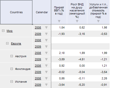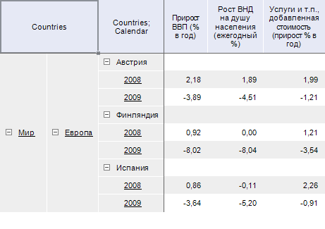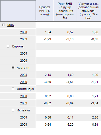 Объединить все измерения. Объединяет иерархию всех измерений. Применяется отдельно к шапке, боковику или для всей таблицы в зависимости от выбранного элемента;