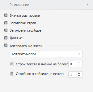Автоподгонка ячеек. Определяет, используется ли автоподгонки размера ячеек. По умолчанию флажок установлен, размер ячеек подбирается автоматически.