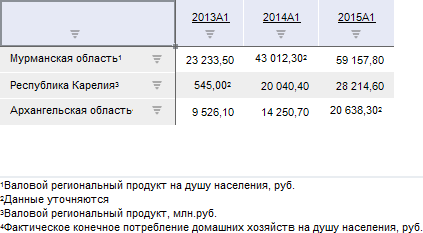 Сноски могут быть числовыми, текстовыми или символьными. Для сносок может быть отображена расшифровка, расположенная справа, слева, сверху или снизу от таблицы данных.