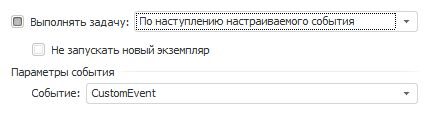 При выборе данного варианта задача будет выполняться при наступлении пользовательского события, которое вызывается из кода Fore/Fore.NET. На вкладке «Расписание» будет доступен выбор пользовательского события:
