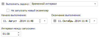 Интервал между запусками. Задает интервал времени (количество часов и/или минут), через который будет производиться запуск задачи на выполнение.