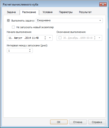 Настройки периодичности выполнения задачи задаются на вкладке «Расписание» в диалоге настройки параметров задачи.