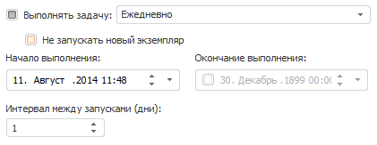 Интервал между запусками. Задает количество дней, через которое будет производиться запуск задачи на выполнение;