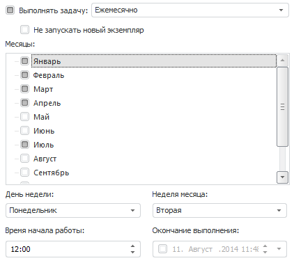 Месяцы. Задача будет рассчитана в те месяцы, для которых установлены флажки;