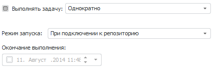 Окончание выполнения. Задаёт дату и время последнего запуска задачи, после наступления которых задача не будет больше запускаться на выполнение;