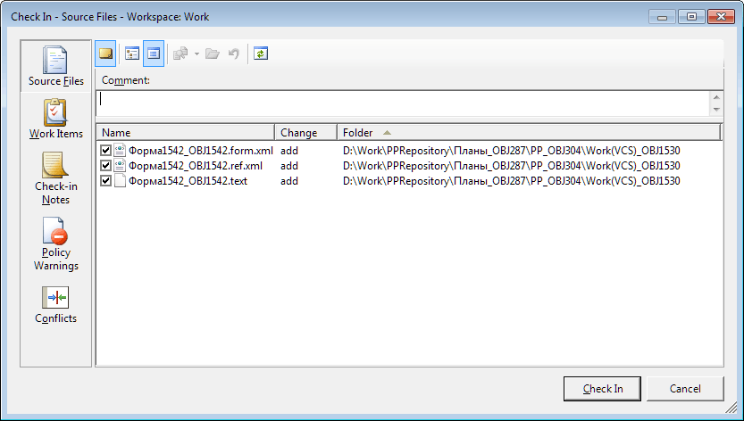 Примечание. При добавлении в систему управления версиями какого-либо .NET-объекта также автоматически будет добавлена соответствующая родительская .NET-сборка и все ее содержимое.