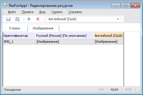 В редакторе ресурсов будет отображен столбец для перевода на английский язык: