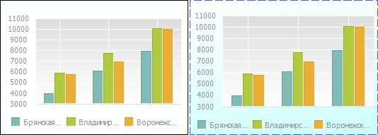 Ниже приведены примеры диаграммы, для которой настроена только граница (слева) и для которой задана заливка, изменены граница области и настроены отступы (справа):
