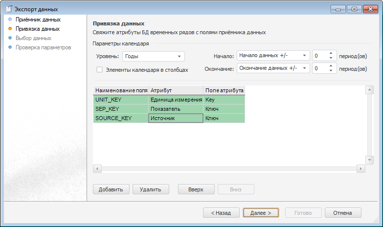 Уровень. Укажите календарную динамику выгружаемых данных;