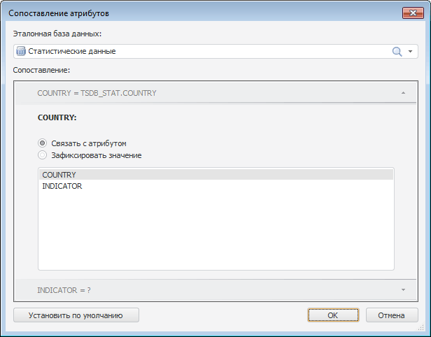 Для восстановления связей атрибутов созданных автоматически, нажмите кнопку «Установить по умолчанию».