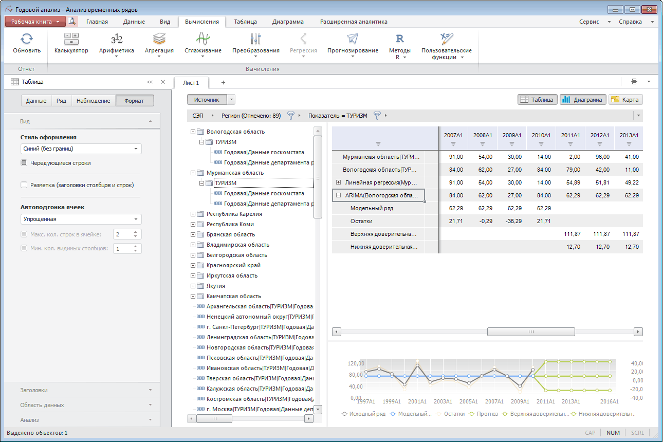 Инструмент «Анализ временных рядов» предоставляет пользователю следующие возможности: