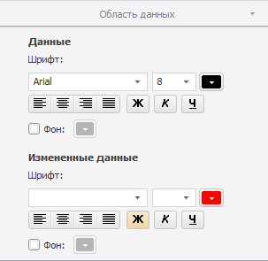 Измененные данные. Предназначена для настройки оформления измененных данных.