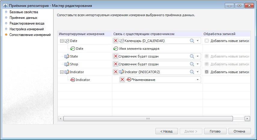 Для связи импортируемых измерений с существующими справочниками репозитория используйте страницу «Сопоставление измерений».