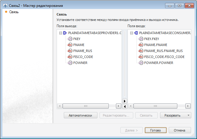 В открывшемся окне задачи создайте источник данных и приёмник данных и установите между ними связь.