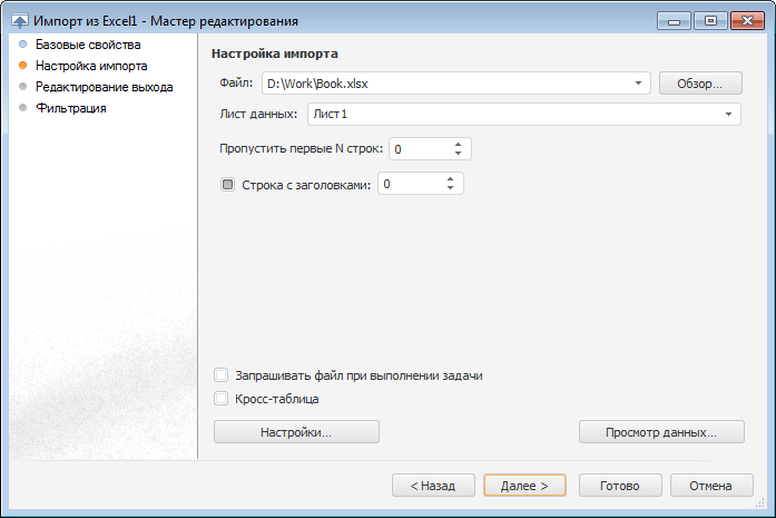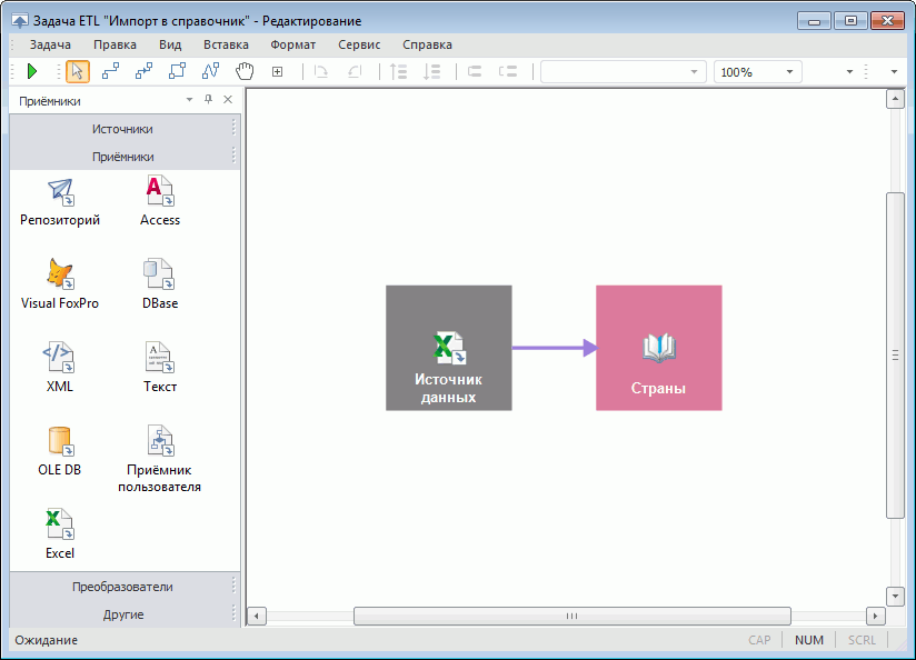 Ниже рассмотрен процесс работы в инструменте на примере задачи ETL «Импорт в справочник».