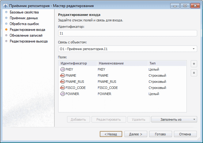 Для задания списка полей и связи для входа используйте страницу «Редактирование входа».