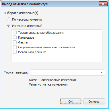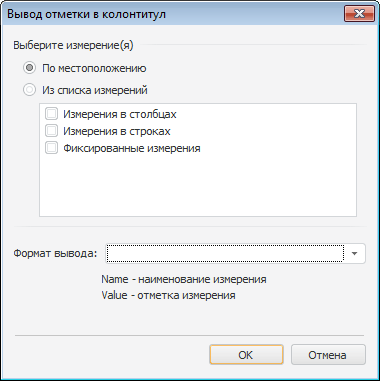 Выберите измерение(я). В данной группе определяются измерения, отметка которых будет выведена в колонтитул: