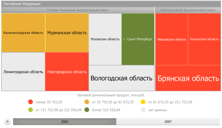 Важно. Перед работой с визуализатором убедитесь в соблюдении системных требований к клиентской станции (для настольного приложения) к BI-серверу (для веб-приложения). В веб-приложении поддержка визуализаторов осуществляется, если BI-сервер установлен на ОС Windows Vista и выше. Внешний вид визуализатора может отличаться в зависимости от используемых графических библиотек (DirectX 9, DirectX 10 или OpenGL).