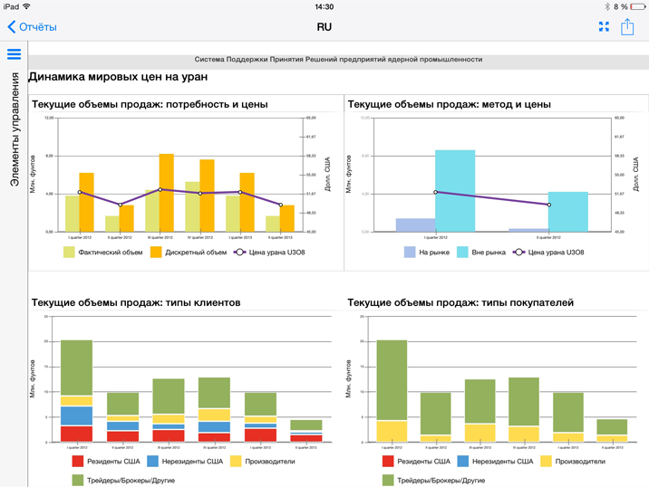Примечание. Оформление заголовков применяется только для страницы, на которой отображаются все блоки аналитической панели.