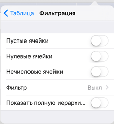 Нулевые ячейки. Будут отфильтрованы ячейки таблицы, содержащие нулевые значения;