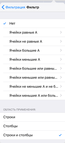 После настройки параметров фильтрации из столбца или строки будут исключены ячейки, значения которых соответствуют заданному условию.