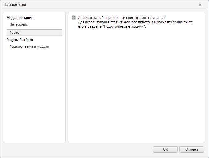 В инструменте «Моделирование и прогнозировние» доступна интеграция с пакетом R, расширяющим аналитические возможности модуля.