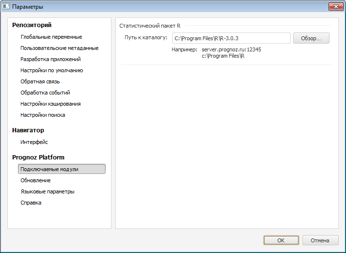 Примечание. Данный шаг необходим, если R установлен на рабочей станции отличной от рабочей станции, на которой установлен Prognoz Platform 8.