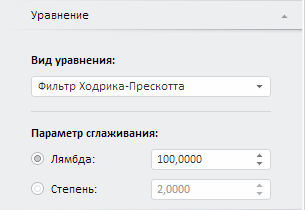 Примечание. В методе «Фильтр Ходрика-Прескотта» входная переменная одновременно является и моделируемой. Для создания уравнения установите связь переменной с самой собой.