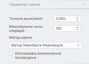 Для настройки параметров оценки нелинейной регрессии используйте вкладку «Параметры оценки» на боковой панели.