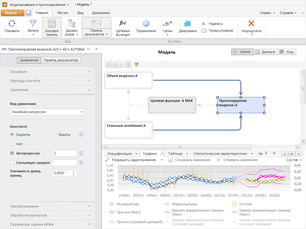 Ленту инструментов. Содержит кнопки для работы с моделированием и прогнозированием;