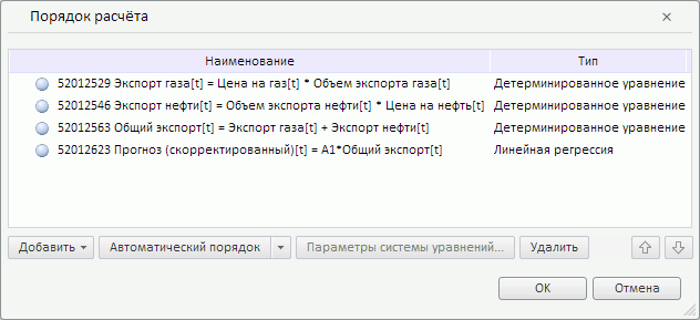 Настройка порядка расчёта позволяет выстроить уравнения модели в соответствии с зависимостями между ними.
