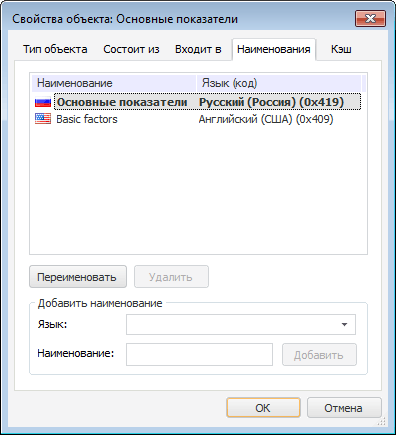 Совет. Если вы используете несколько языков репозитория для пользователя, то задайте наименования на всех используемых языках, так как, если для объекта не задано наименование на языке репозитория для пользователя, то будет использоваться наименование объекта на языке репозитория по умолчанию.