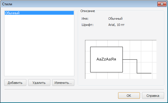 В левой части окна расположен список существующих стилей, а в правой - описание и образец выбранного стиля.