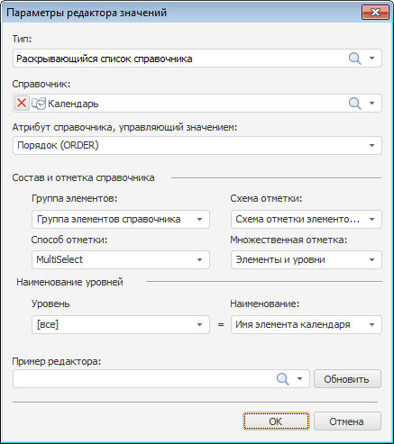 Справочник. В раскрывающемся списке выберите справочник, элементы которого будут отображаться в редакторе;