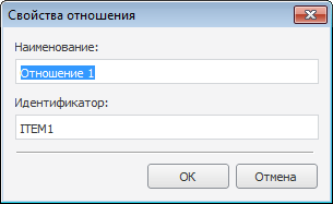 В диалоге задайте наименование и уникальный идентификатор создаваемого отношения.
