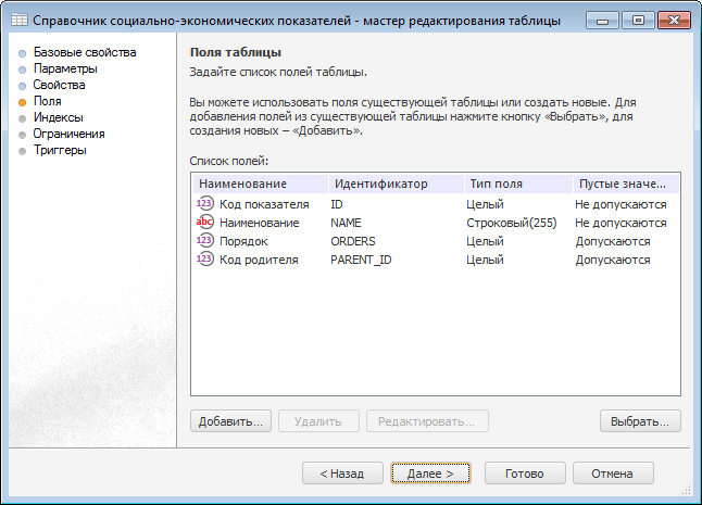 Ниже рассмотрен процесс создания таблицы на примере таблицы-справочника «Справочник социально-экономических показателей».