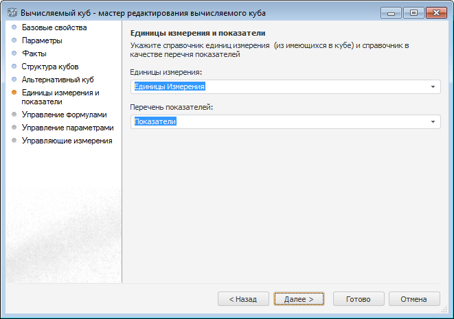 На данной странице в случае необходимости указывается справочник единиц измерения и справочник в качестве перечня показателей. Указание данных справочников позволяет реализовать автоматический пересчет единиц измерения.