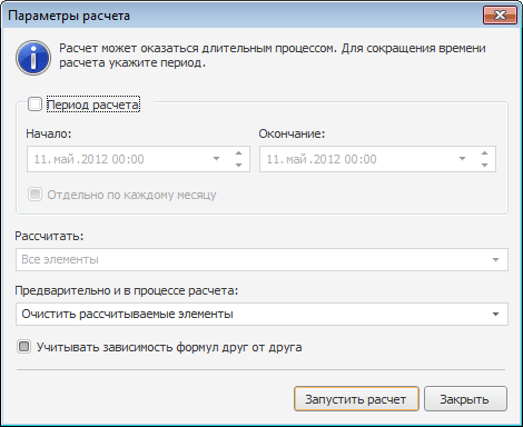 Примечание. Если диалог был вызван из навигатора объектов, то данное поле будет недоступно для редактирования, расчет будет произведен по всем координатам куба (вариант «Все элементы»).