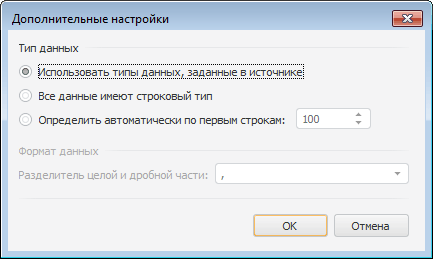 Использовать типы данных, заданные в источнике. Типы данных будут получены из источника данных и преобразованы к сопоставимым типам, используемым в Prognoz Platform. Данный пункт доступен только для источников Microsoft Access или OLE DB;