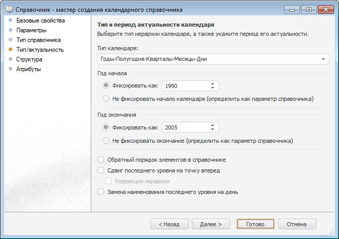 На странице «Тип справочника» установите переключатель напротив пункта «Календарный справочник».