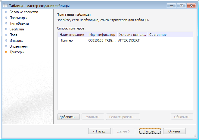 На странице «Триггеры таблицы» задается список триггеров для таблицы.