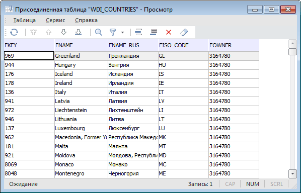 В данном окне можно просматривать и редактировать информацию. Перемещение по записям выполняется с помощью мыши, клавишей управления курсором или с помощью кнопок на панели навигации.