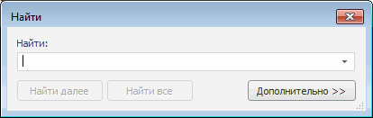 В поле «Найти» введите полное наименование или часть наименования искомого элемента. После нажатия кнопки «Найти далее» фокус будет перемещен к первому найденному элементу. При последующем нажатии кнопки фокус будет перемещен к следующему найденному элементу и так далее.