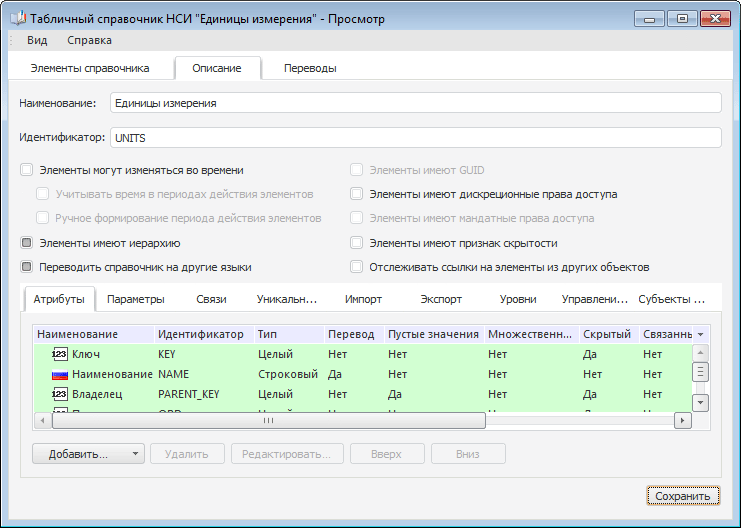 Для корректировки структуры справочника, построения задач импорта и экспорта используйте вкладку «Описание».