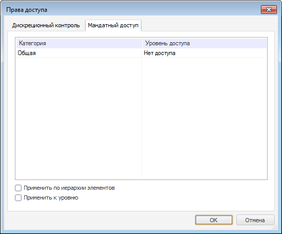 мандатный контроль. Основан на присвоении объектам и субъектам системы меток доступа. Доступен только для табличных справочников НСИ, если на вкладке «Описание» установлен флажок «Элементы имеют мандатные права доступа».