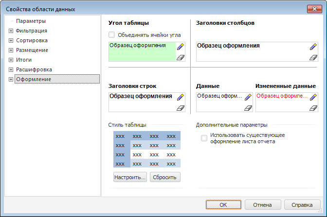 В появившемся окне «Свойства области данных» на вкладке «Параметры» задайте следующие значения: