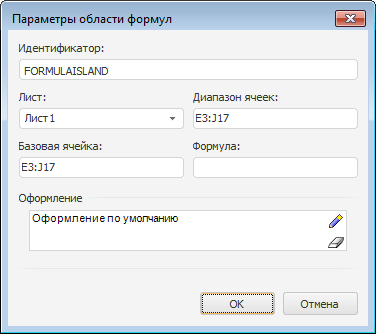 Область формул - диапазон ячеек на листе отчета, значения которого вычисляются по единой формуле.